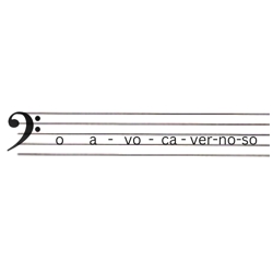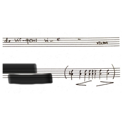 Espaço/Tempo Tanto na Voz 1 como na Voz 2, a distribuição espacial das células (sílabas e motivos rítmicos) está diretamente relacionada com a sua progressão temporal. Quanto mais próximas as células aparecem na partitura, mais rapidamente se sucedem; quanto mais espaçadas, maior o tempo entre elas. |